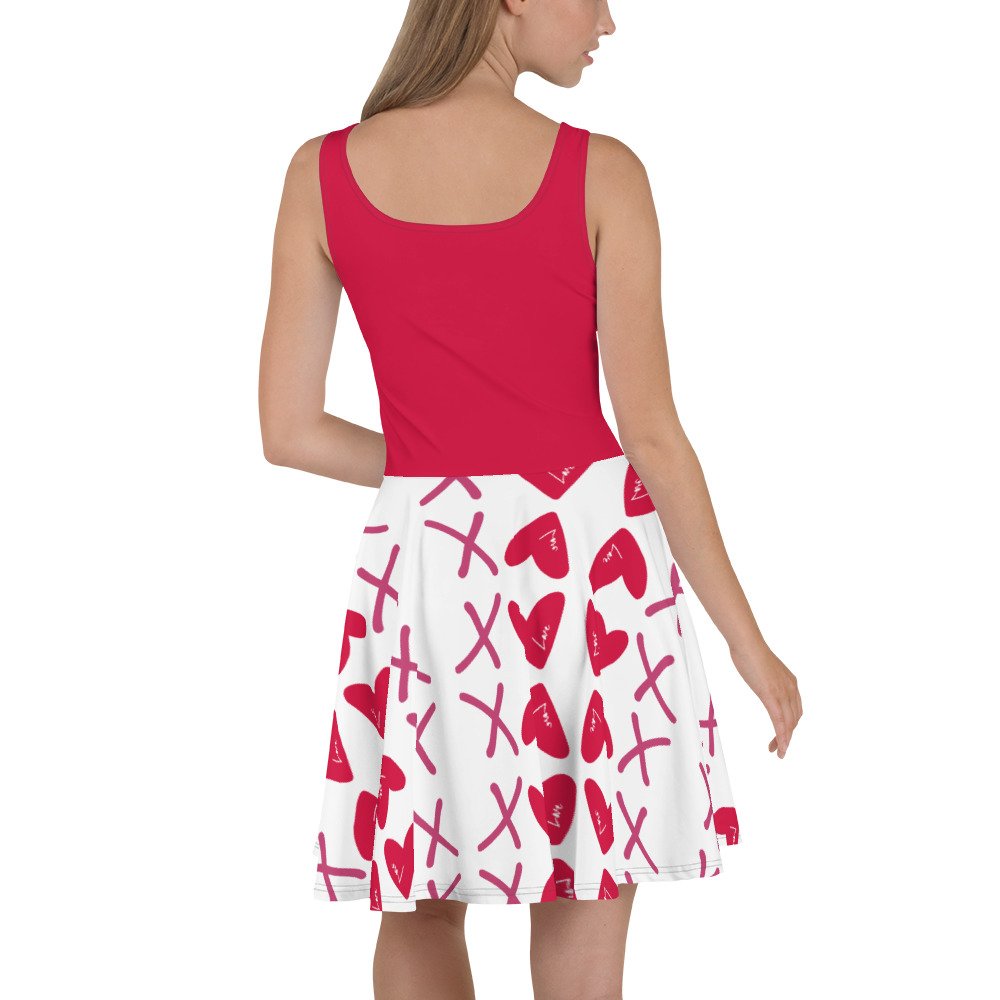 Spread love and happiness with the Valentine Heart-Print Skater Dress from Be Your Style. Designed for bold and youthful women, this sleeveless dress features a flared skirt that gives it a playful yet elegant vibe. The vibrant red and white heart and XO design makes it a perfect choice for Valentine’s Day, casual outings, or even sporty activities.